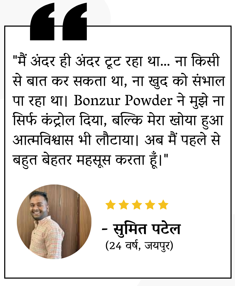 खुद से लड़ाई मत लड़ो… अब मर्दाना कमजोरी, वीर्य की कमी, और बार-बार हस्तमैथुन की लत को कहो अलविदा – Bonzur Powder से पाओ आत्मविश्वास, ताकत और एक नया जीवन!