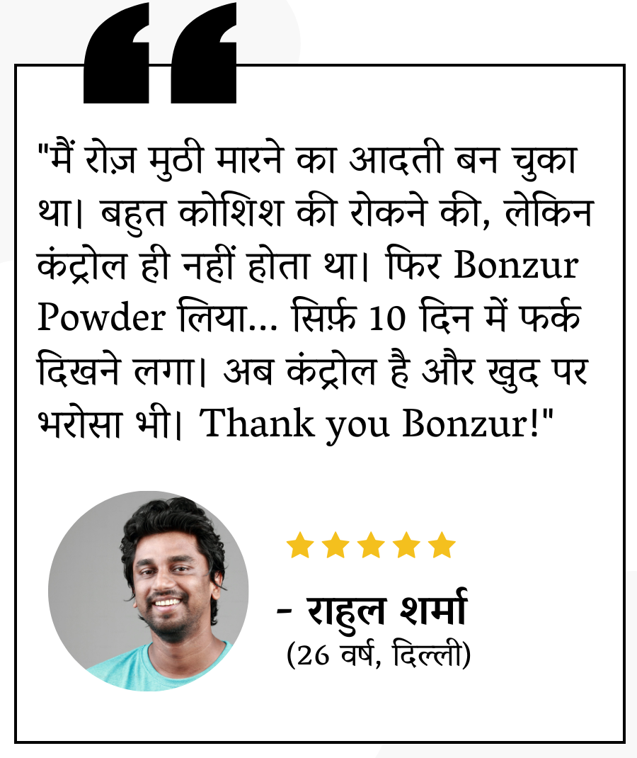 क्या बार-बार हस्तमैथुन की आदत आपकी ताक़त को चूस रही है? अब समय आ गया है इस लत से छुटकारा पाने का– 100% आयुर्वेदिक समाधान Bonzur Powder के साथ!